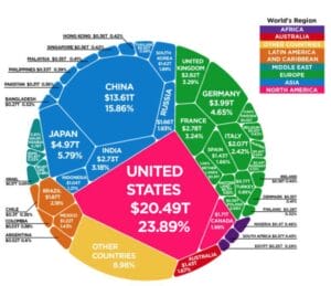 - The United States and China comprise nearly 40% of the global economic GDP.