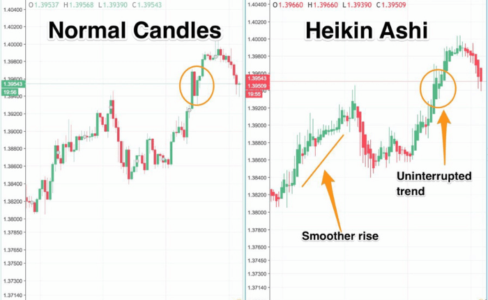 The idea behind using a Heikin Ashi chart is that it filters market noise.