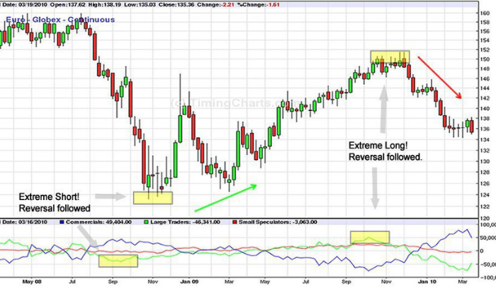 We could say that speculators because they follow the trend, catch most of the moves BUT are wrong on turning points. On the other hand, commercial traders miss most of the trend EXCEPT when the price reverses. Until a sentiment extreme occurs, it would be best to go with the speculators. The basic rule is this: every market top or bottom is accompanied by a sentiment extreme, but not every sentiment extreme results in a market top or bottom.
