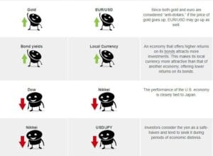 The price action of currencies is often driven by their relationship with commodities, bonds, and stock indices.