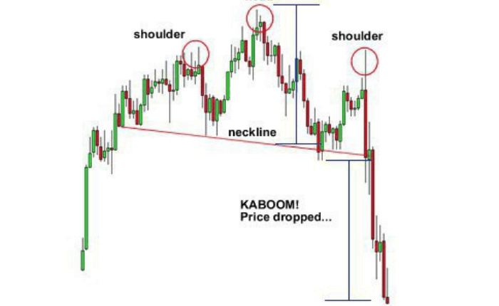 It is formed by a peak (shoulder), followed by a higher peak (head), and then another lower peak (shoulder). A “neckline” is drawn by connecting the lowest points of the two troughs. The slope of this line can either be up or down. The head is the second peak and is the highest point in the pattern. The two shoulders also form peaks but do not exceed the height of the head. With this formation, we put an entry order below the neckline.