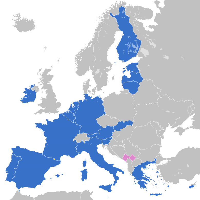 It consists of 19 countries in the EU: Austria, Belgium, Cyprus, Estonia, Finland, France, Germany, Greece, Ireland, Italy, Latvia, Lithuania, Luxembourg, Malta, the Netherlands, Portugal, Slovakia, Slovenia, and Spain.